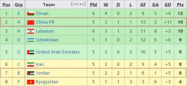 因为韩国2-1逆转黎巴嫩帮了忙,现在国足打平即可确认出线。在最后一轮不输叙利亚9球,国足都至少会在最好小组第二的积分榜力压黎巴嫩。