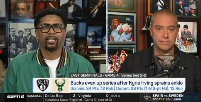 直播吧6月15日讯 前NBA球员杰伦-罗斯在节目中谈到了昨日欧文踩到字母哥扭伤脚踝一事。