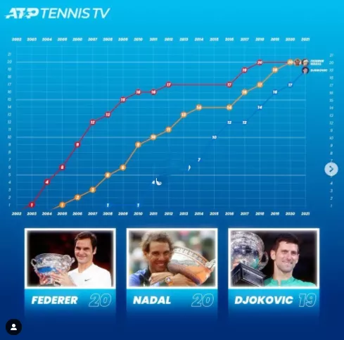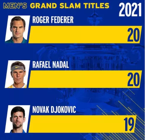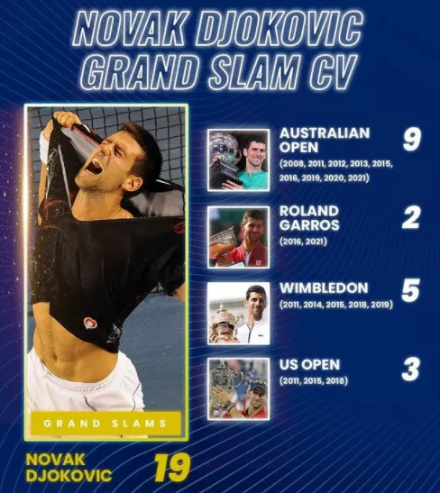 1.大满贯数量达到19个,仅比费德勒和纳达尔少1个。
