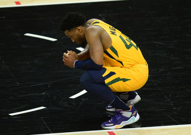 北京时间6月15日,尽管爵士在G4战继续输球被快船追平总比分,但米切尔的疯狂砍分势头依然在延续。米切尔此役出战39分钟,他被限制到只有26中9的准星,但命中6记三分狂轰37+5+5,尤其是博得15罚13中,已经连续6场30+证明自己的超级得分能力。