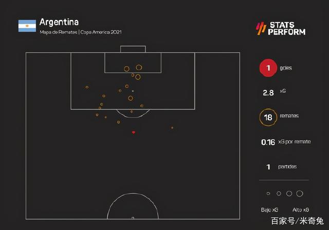 本场阿根廷一共完成18次射门(梅西7次、冈萨雷斯6次占据总数的72%),遥遥领先于对手的5次。阿根廷的XG值达到了2.82,但是却只通过梅西的一次任意球破门,全队浪费了太多的必进球。