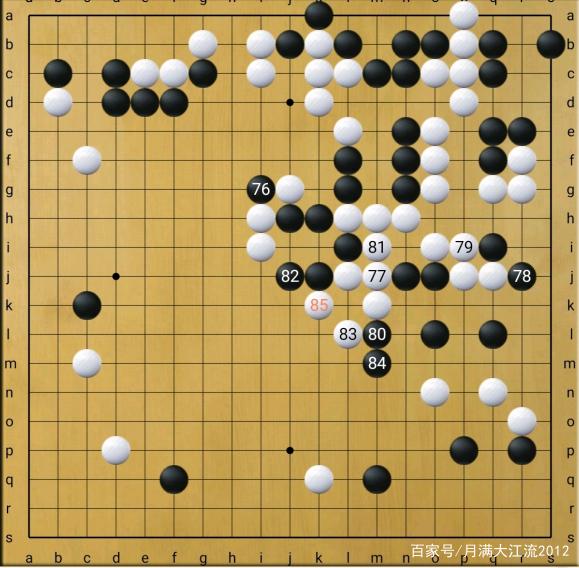实战,黑80靠,白81接,82补,83打吃时,黑不得不弃子,白85打拔一子。