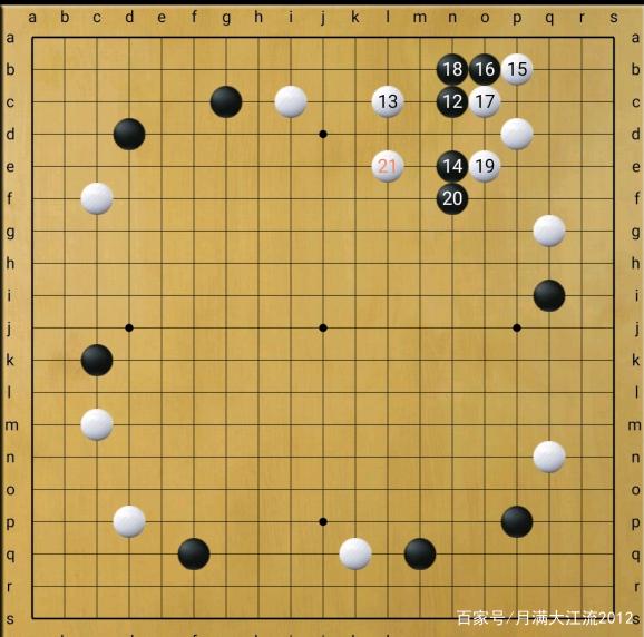 白15跳,黑16尖阻渡,白17挤,再19尖顶,然后21跳,瞄着挖断黑棋!招法非常的紧凑。