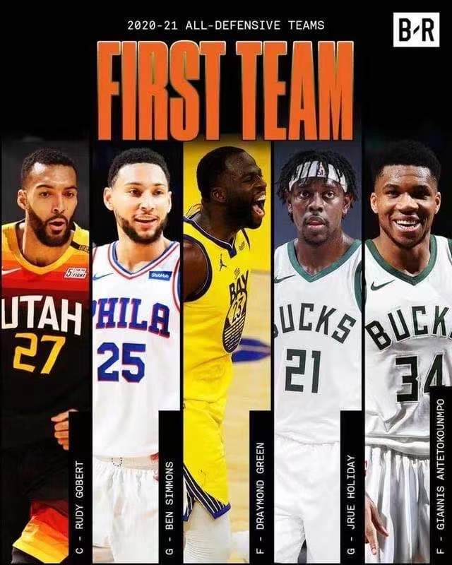 戈贝尔是联盟最佳防守球员,他入选最佳防守一阵是实至名归,爵士又取得联盟第一的战绩,戈贝尔的防守起了至关重要的作用。西蒙斯在官方的最佳防守球员榜单上一直名列前二,作为一名侧翼的防守球员入选也是情理之中的事情。字母哥和霍尔迪入选也能理解,一个是联盟最棒的国际球员,一个是他的队友。至于格林,作为两届最佳防守球员,他的防守功底还是在线的,而且他还是勇士体系重要的一环。相信绝大部分球迷对这5名球员入选一阵都没有意见。