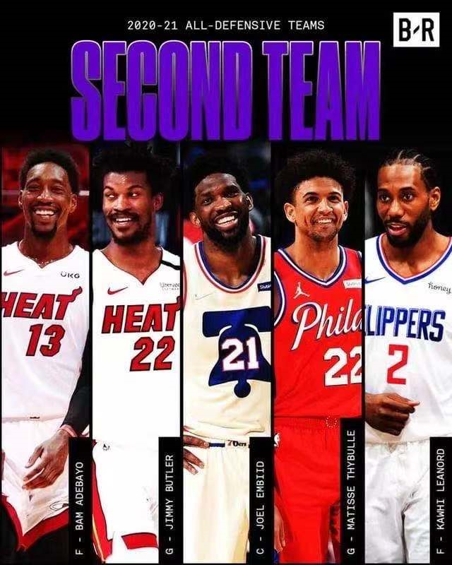 巴特勒是联盟出名的硬汉,球风硬朗,而且防守态度积极,走到哪里都是球队的防守核心。伦纳德是NBA最出色的侧翼防守球员,这样说应该没有球迷反对,他的抢断硬是在联盟出了名,还没成名前在总决赛中敢一对一防守詹姆斯。恩比德是现役的优秀的大个子球员,前半个赛季也打出MVP级别的表现。不过,小将赛布尔和阿德巴约入选还是差了一些火候,虽然他的表现都不错,但是挤掉联盟的篮板王,还是有些说不过去。