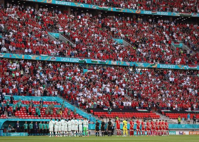 据统计,约有6万7千名球迷到达普斯卡什球场观战!上半场,葡萄牙围攻,匈牙利筑起铁桶阵。第4分钟,若塔拿球转身抽射被门将扑出;第8分钟,若塔跟进垫射将球打飞,远端C罗摊手表示不满;18分钟,C罗近距离垫射被门将挡出,随后边裁举旗示意越位;