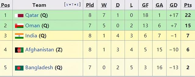 由于同组的印度跟阿富汗打平1-1,孟加拉就锁定了小组垫底的位置。也就是说,阿曼在最后一轮输给孟加拉,他们的有效积分也有12分,至少超过了F组第二的塔吉克斯坦和H组的黎巴嫩。
