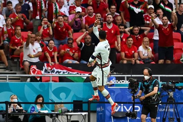 这是C罗个人第11个欧洲杯正赛进球,超越普拉蒂尼,独自排名历史第一。这也是C罗国家队生涯第106球,则是现役第一。此外,这是C罗职业生涯第780个正式比赛进球,还是历史第一,全队疯狂庆祝。