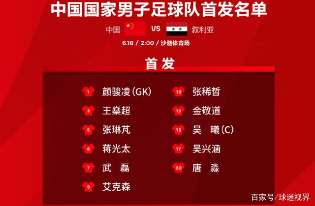 国足40强赛最后一战首发名单公布,金敬道、艾克森、唐淼、王燊超、武磊、吴兴涵再一次出现在首发名单中,组成球迷中盛传的“金木水火土五行含”大阵。而球迷呼吁的阿兰、李可、蒿俊闵等球员继续替补席待命。