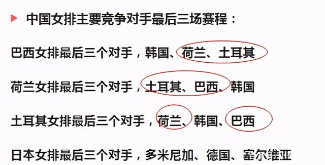 土耳其后面三个对手分别是荷兰、韩国、巴西,韩国女排目前赢了3场,排名积分榜第14(倒数第三),第四打第十四,土耳其赢下这个对手应该是没有太多的悬念,目前就看荷兰、巴西能否给力了,赢下土耳其,帮助中国女排一把!