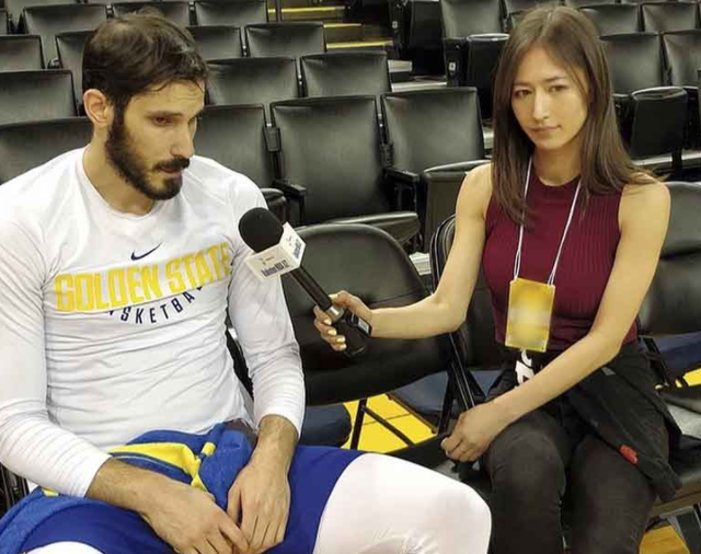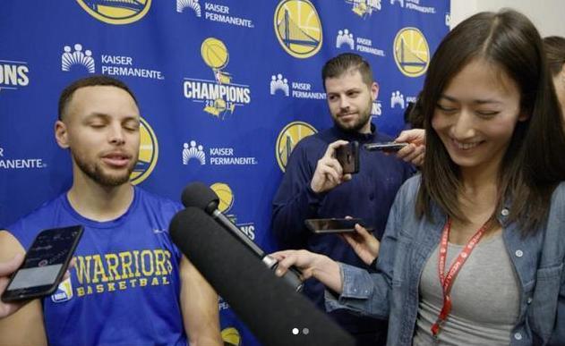 宫河玛雅长期担任勇士的跟队记者,毕竟那个时候,勇士队在联盟的热度最高,成绩也最好,再加上库里的影响力,报道勇士几乎是“抱大腿”的首选,宫河玛雅也顺利上车,与库里、汤普森等球员建立了非常不错的死角关系,也经常出入勇士队的更衣室进行采访,总能带来一手信息,再加上她的英语非常好,大场面完全不怵,与NBA巨人们侃侃而谈的样子,非常有气场和魅力,因此瞬间爆火全球,INS粉丝大涨一波。