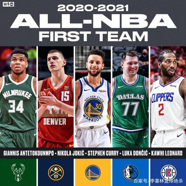 最佳阵容一队:约基奇、库里、字母哥、东契奇、莱昂纳德。最佳阵容二队:詹姆斯、恩比德、利拉德、保罗、兰德尔。最佳阵容三队:欧文、比尔、戈贝尔、巴特勒、乔治。