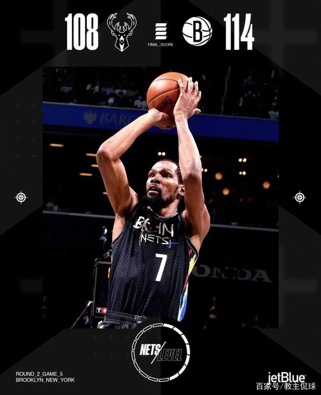 雄鹿只能犯规战术,篮网没有再给对手机会。全场比赛结束,篮网114比108战胜雄鹿,拿下天王山之战。杜兰特打满48分钟,23投16中,狂轰49分17篮板10助攻3抢断2封盖!杰夫-格林27分,哈登10中1得到5分6篮板8助攻4失误。