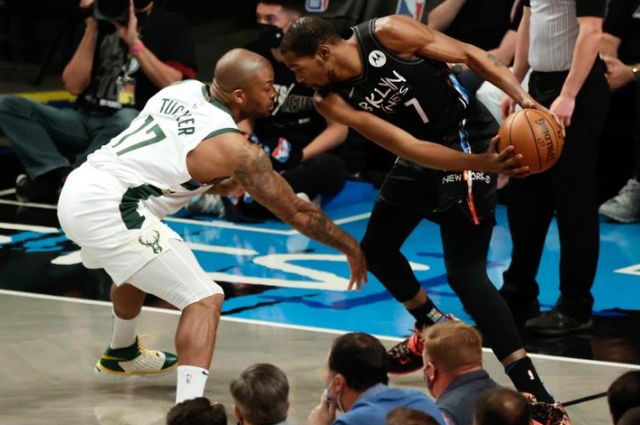 布鲁克林篮网在首节只有15分进账,这15分来自两名球员,凯文-杜兰特拿到7分,杰夫-格林拿到8分,真的可以说是糟糕透了。雄鹿自然不会放弃这样的好机会,单节拿到14分的领先优势。次节比赛归来,凯文-杜兰特单节又是11分4篮板3助攻2抢断,杰夫格林的三分还在继续,但哈登始终没有得分进账,于是半场结束的时候,分差来到了16分。