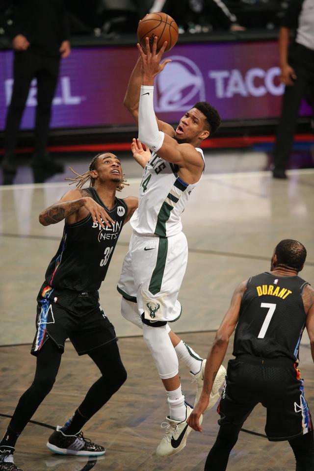 但杜兰特率领篮网在第三节末段开始反扑,在第四节完成比分扳平和反超。凭借着杜兰特末节单节20分,全场49分17篮板10助攻的大号三双的疯狂表现,篮网最终以114比108逆转雄鹿,系列赛以3比2的大比分夺得了半决赛赛点。
