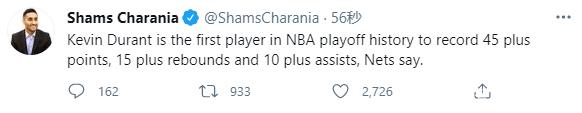 最终杜兰特做到了,全场打满48分钟,49分17篮板10助攻,NBA季后赛首个45+15+10。死神这一晚再度降临,杜兰特要带队挺进东部决赛!