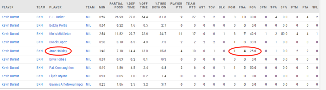 两队系列赛第4战,杜兰特罕见低效。欧文受伤之后,他面临了巨大的包夹压力。第4场比赛中,他曾经与一防球员霍乐迪对位1分40秒,这期间他4投1中命中率仅有25%。从防守效果来看,霍乐迪防守杜兰特,彼战之中是整个雄鹿队最重要的。