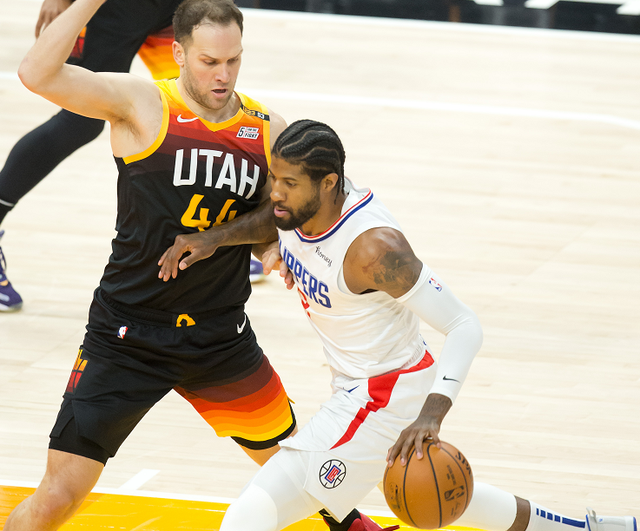 在本轮系列赛之前乔治表现的都不好,首轮对阵独行侠就拉胯了好几场。而即便是 本轮对阵爵士的前两场比赛乔治都发挥不好,前两场比赛加起来只有35投12中,命中率刚过33%!
