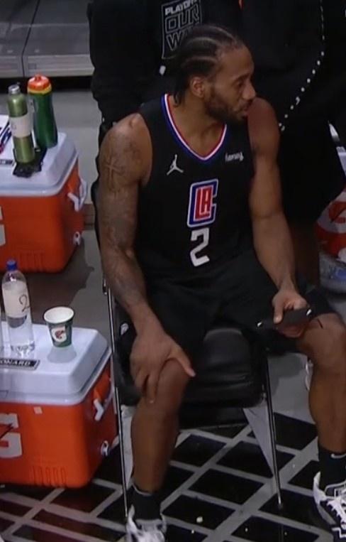 莱昂纳德实在跟爵士的第四战第四节受伤到,当时,他在持球推进到过程中跟英格尔斯发生了肢体接触,随后右膝盖感到不适,被换下场。当时,小卡虽然没有直接回到更衣室,但是在场边捂着自己的膝盖,还是让人揪心不已。
