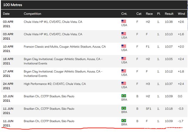 与中国田径奥运选拔赛同一时间举行的巴西田径锦标赛,男子百米比赛在6月12日结束,23岁巴西短跑新星奥利维拉发挥出色,在大逆风-1.7米/秒的不利条件中跑出10秒09夺得冠军,这是他第13次跑进10秒10,具备突破10秒的硬实力,奥利维拉曾在多哈世锦赛半决赛战胜苏炳添,随着实力得到增强,他将成为苏炳添在东京奥运会的劲敌之一。