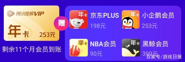 “买1得5”就是腾讯视频这次打出的活动亮点,买的1自然是腾讯视频VIP,另外的4个分别是京东PLUS会员、小企鹅会员和黑鲸会员年卡,再加上一个NBA会员的季卡。