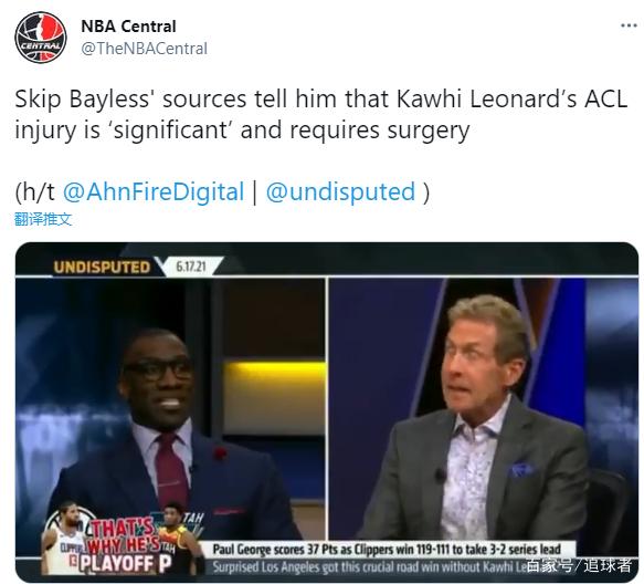 北京时间6月18日,快船巨星莱昂纳德的膝伤不容乐观,名嘴斯基普-贝勒斯在节目中爆料,小卡十字韧带伤势很严重,需要接受手术;名记直言小卡季后赛复出并不乐观。