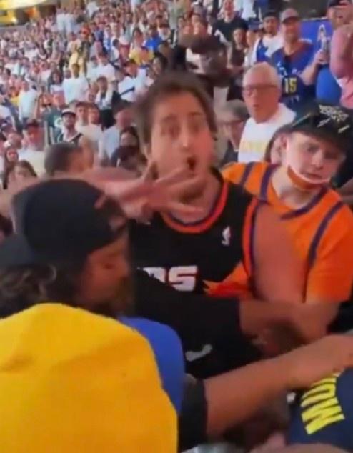 直播吧6月18日讯 据此前报道,在太阳vs掘金的G3的看台上,一名太阳球迷暴揍两名掘金球迷并预言横扫。最终太阳也以4比0横扫掘金晋级西部决赛。
