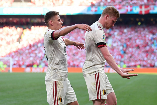 丹麦次轮的对手比利时队,现居世界排名第一,是欧洲杯冠军的有力竞争者,首轮比利时3-0轻松战胜俄罗斯队,且比利时队在对阵丹麦前宣布,中场核心大将德布劳内已经具备出场比赛的条件了。