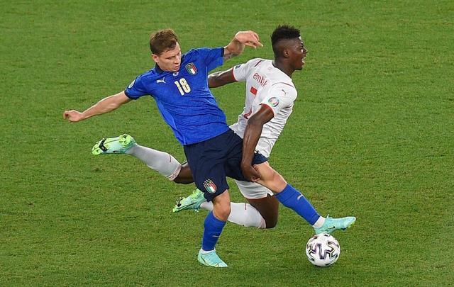 不过曼奇尼对此早有准备,意大利上半场先发制人,在中高位展开了积极的逼抢,切断了扎卡和队友之间的联系,打乱了瑞士的中场部署,成功夺取了中场主动权。