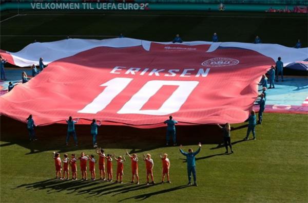哥本哈根帕肯球场,今晨B组比利时队2比1击败丹麦队的小组赛,除了结果,所有人心里都惦念一个名字——埃里克森。丹麦队10号在首轮小组赛突然倒地不省人事,经过赛场队友、队医的生死接力,才从鬼门关被抢救回来。赛前,一件巨大的埃里克森10号球衣出现在球场上,全场高唱《你永远不会独行》。进行到第10分钟,裁判吹停比赛,双方球员均停下脚步,全场球迷起立为埃里克森鼓掌祈福,场上的球员相互拥抱致意,曾第一时间对埃里克森实施抢救的丹麦队长克亚尔找到门将小舒梅切尔,两人的拥抱向所有人展示,丹麦足球要带着埃里克森的梦想继续前行。