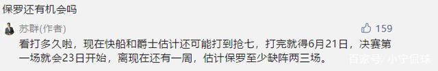 有球迷问到著名评论员苏群,认为保罗还有机会吗?苏群则回应道:看打多久啦,现在快船和爵士估计还可能打到抢七,打完就得6月21日,决赛第一场就会23日开始,离现在还有一周,估计保罗至少缺阵两三场。意味着保罗乐观可能在西决G3复出,如今来看,西决太阳的对手大概率会是快船,太阳本就面对快船没有太大优势,小卡的缺阵也不知道持续多长时间,丢失球队核心的太阳西决也蒙上了一层阴影。