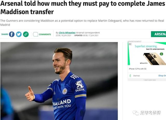 报道称,阿森纳方面相信,只要他们能提交合适的报价,交易将有机会完成,不过考虑到麦迪逊24岁的年龄、合同形势(2024年到期)以及本土球员的属性,莱斯特城将在谈判中场保持强硬立场,据悉他们去年夏天还曾拒绝过其他球队7000万英镑的报价,但尽管如此,邮报表示阿森纳方面自信一份6000万英镑左右的报价就可以完成交易。