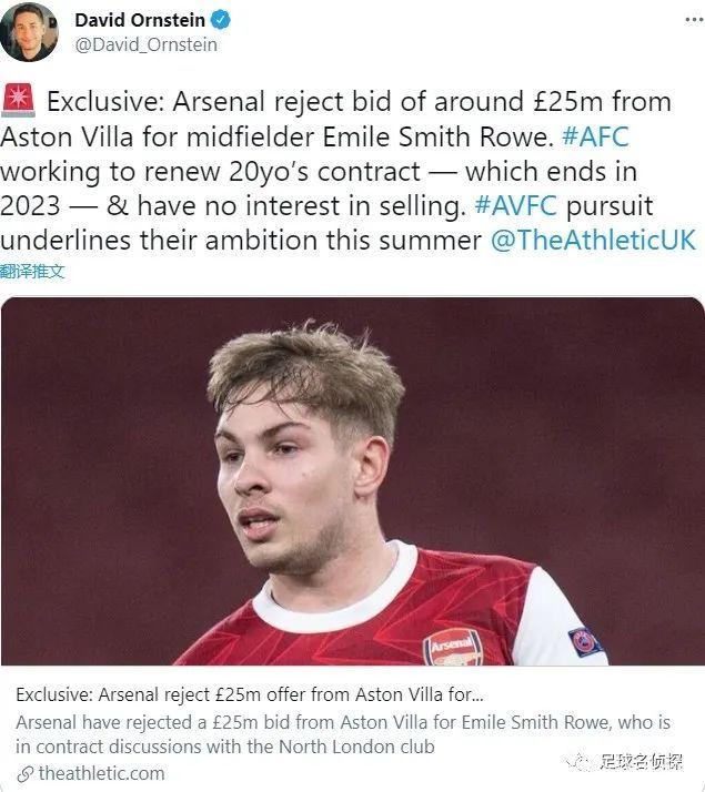 伦敦足球记者CWY发文,阿森纳已经拒绝了一份维拉对洛维提交的2500万英镑的报价。
