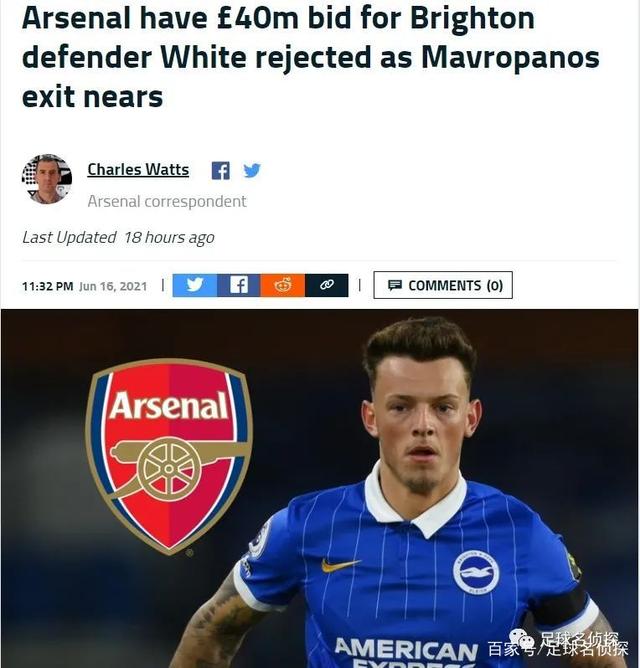 至于怀特,所有可靠消息都说阿森纳报价了4000万,但布莱顿要求5000万。