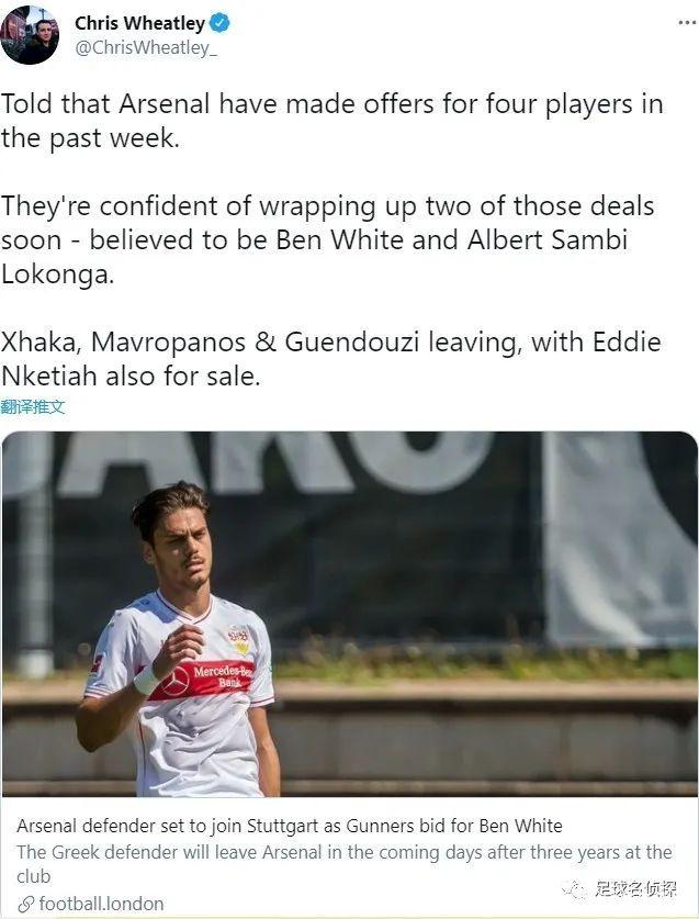 阿森纳报价本怀特的消息最近24小时几乎是刷屏一般,但其他媒体的报道我就不多说了,就说几个有代表性的,其实也基本大同小异。
