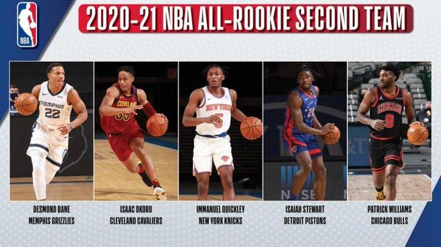 直播吧6月18日讯 最佳新秀阵容出炉,其中二阵人员如下: