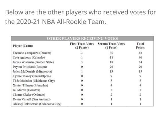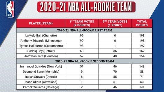 新秀阵容具体投票结果: