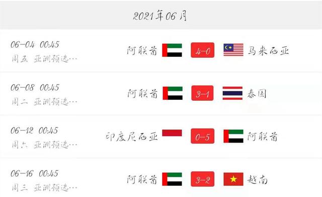 以阿联酋为例,在重启40强赛之前,他们仅以2胜2负排在小组第三,值得一提的是,同组其他4个对手均为东南亚球队。