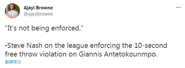 北京时间6月19日,篮网主教练纳什在接受媒体采访时,谈到了对手雄鹿球星字母哥的罚球,他表示:“联盟的罚球十秒违例规则在扬尼斯这里没有被执行。”