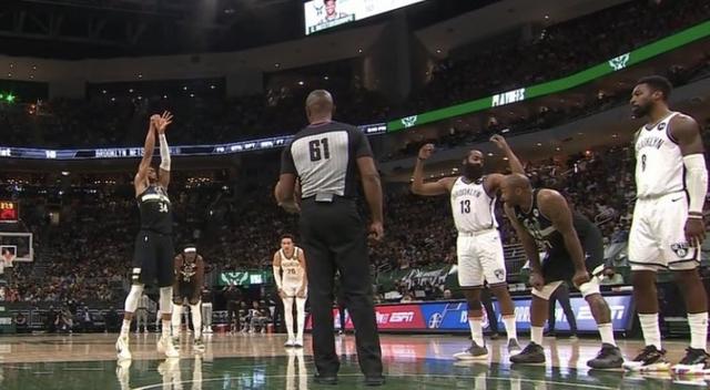在上一场G6的比赛首节,字母哥罚球准备时间耗时太久,引来了很多人的不满,尤其是对手篮网。比赛镜头中能够非常明显的看出,篮网球星哈登在面对字母哥不断试投,却又迟迟不拿球完成罚篮的行为,摊手表示抗议与无奈。