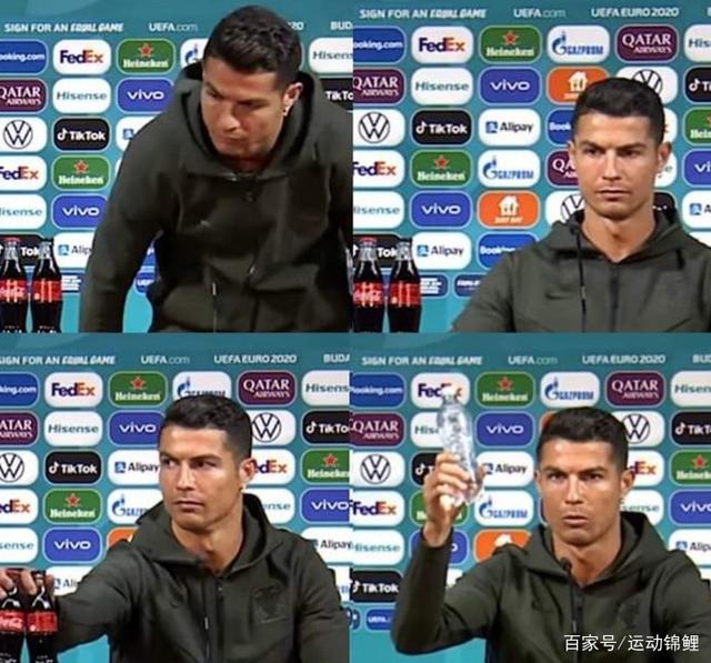 相信球迷们都被一条消息刷屏了,那就是在欧洲杯的赛前发布会上,C罗直接移走了摆放在桌子上的可口可乐,随后C罗直接拿起一瓶水对着镜头说了一句,“Water,Coca-Cola(水,可口可乐)”,简而言之就是自律的C罗不喝含糖饮料只喝水。