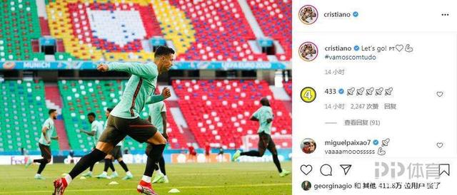 北京时间6月20日0:00,德国与葡萄牙将迎来一场小组赛的关键战,赛前,C罗在INS上发出了自己训练中的照片,为球队加油。
