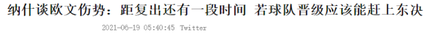 篮网和雄鹿的抢七大战将在明天开启,纳什在赛前也更新了欧文的最新伤情,纳什表示:“他正在接受治疗,距离复出还有一段时间,不过他的恢复进展顺利。我认为如果我们最终能够晋级到东决,他应该会在东决的某一场复出,我暂时没有具体的时间表,不过我不认为他的伤势会让他这个赛季报销。”