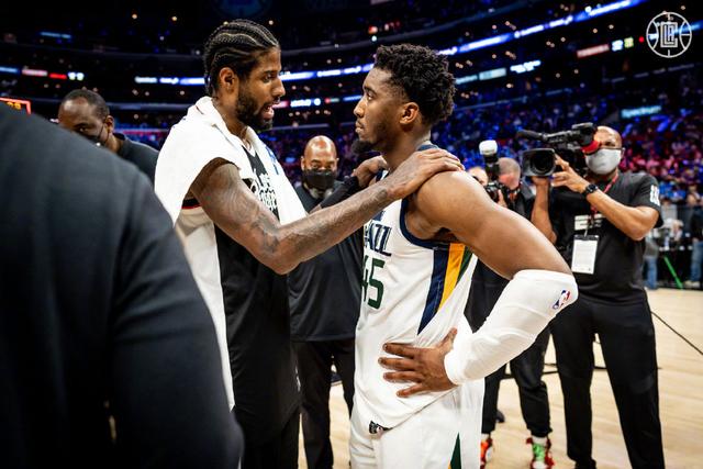 全场哨响时,米切尔并没有直接离开,第一时间返回更衣室接受治疗,他和好友曼恩、巴图姆、包括保罗乔治都送上拥抱祝福,乔治和米切尔也是老冤家,此前在雷霆爵士季后赛对阵时期,关系也不是那么好,但是现在冰释前嫌。此外英格尔斯和乔治这对老冤家也相互送上拥抱,一笑释怀。米切尔大方送出祝福,而戈贝尔赛后在评价快船时表示:“出局对于我们来说很痛苦,但这是学习经历,他们在整个系列赛中都是更坚韧更团结的球队,他们值得赢得掌声和尊重。”