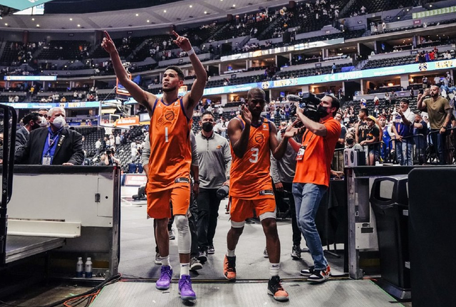本赛季太阳的表现让人敬佩,首轮4-2淘汰湖人,保罗带着肩伤苦撑6场,次轮4-0直接横扫掘金,在时隔10年第一次杀入季后赛时,淘汰上赛季杀入西决的两支球队,太阳创造了NBA新的纪录,但是由于他们早早淘汰掘金,休息时间过长,如今的状态也是未知,对于保罗这种老将来说,需要休息时间,但年轻人的比赛状态是连贯性的,所以这里也有很大隐患。而常规赛太阳三次遇到快船,1月4日,太阳主场107-112输给快船,4月9日,太阳103-113客场输给快船,4月29日,太阳109-101主场击败快船,1胜2负,可以说快船就是他们的苦主,太阳不怕有高大中锋的球队,就怕锋线强力的球队。