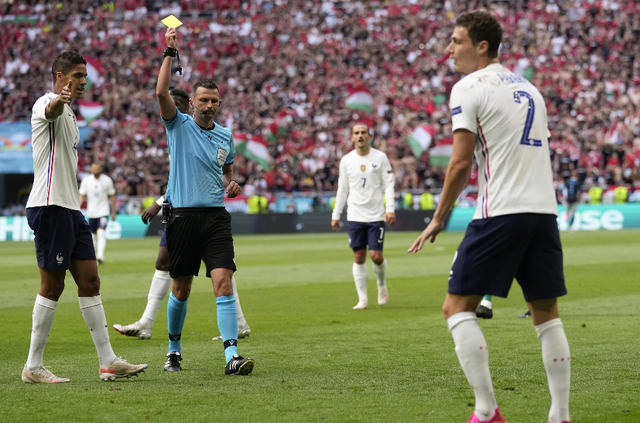 比赛开始,匈牙利凭借主场便利开场猛攻,第9分钟,帕瓦尔反抢犯规吃到黄牌。顶住开场压力后,法国队开始掌控比赛,第13分钟,姆巴佩中路分边,本泽马射门被扑出,格列兹曼近距离补射再次被古拉茨拒之门外,随后边裁举旗格列兹曼越位!16分钟,迪涅左路传中,姆巴佩头球攻门稍稍偏出;