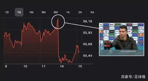 可口可乐6月16日股市收盘时,每股收价54.70美金,5天内下跌2%损失50亿左右。16日的价格,也是他们6月份最低股指,和5月25日持平,进入6月以来首次跌破55块。在C·罗移动可乐瓶后,经过和可口可乐公司沟通后,欧足联官方第一时间的态度是,不会给C·罗开罚单:“每次赛前发布会,都会摆放一瓶矿泉水、一瓶可口可乐、一瓶无糖的可口可乐,供球员和教练选择。球员当然有选择的自由。可口可乐公司在本届欧洲杯期间,作为赞助商提供了一定数量、口味不同的饮料,供运动员选择。欧足联不会对C·罗此举展开调查或进行任何处罚。”