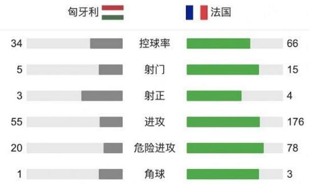 上一场匈牙利虽然大比分输给葡萄牙,但3粒失球都是最后阶段被打进。昨晚匈牙利的控球率和射门次数都远低于法国,但射正次数只比法国少1次,所以1-1平局也不算是什么特别大的冷门。