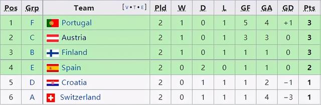 E组:瑞典4分在手稳如狗,斯洛伐克只需1分即可,波兰需取胜,西班牙最后一轮输球也可能以2分出线。