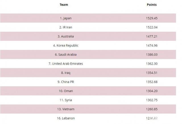 亚洲的前八排位变动不大,日本、伊朗、澳大利亚与韩国继续组成第一梯队,这也是目前12强赛前两个档次的球队,而且也是冲击世界杯的大热门。值得一提的是,和上一期相比,排名上有一处关键变动,40强赛末轮输给伊朗的伊拉克排名被四连胜的阿联酋超越,这样阿联酋成为了第三档次的球队,而伊拉克与国足同档次,2队不会相遇。
